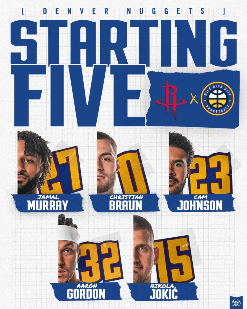 掘金首发:默里、布劳恩、约翰逊、阿龙-戈登、约基奇